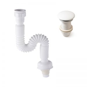 Pop-up Basmalı Beyaz Seramik Başlıklı Lavabo Sifonu KSF103-W