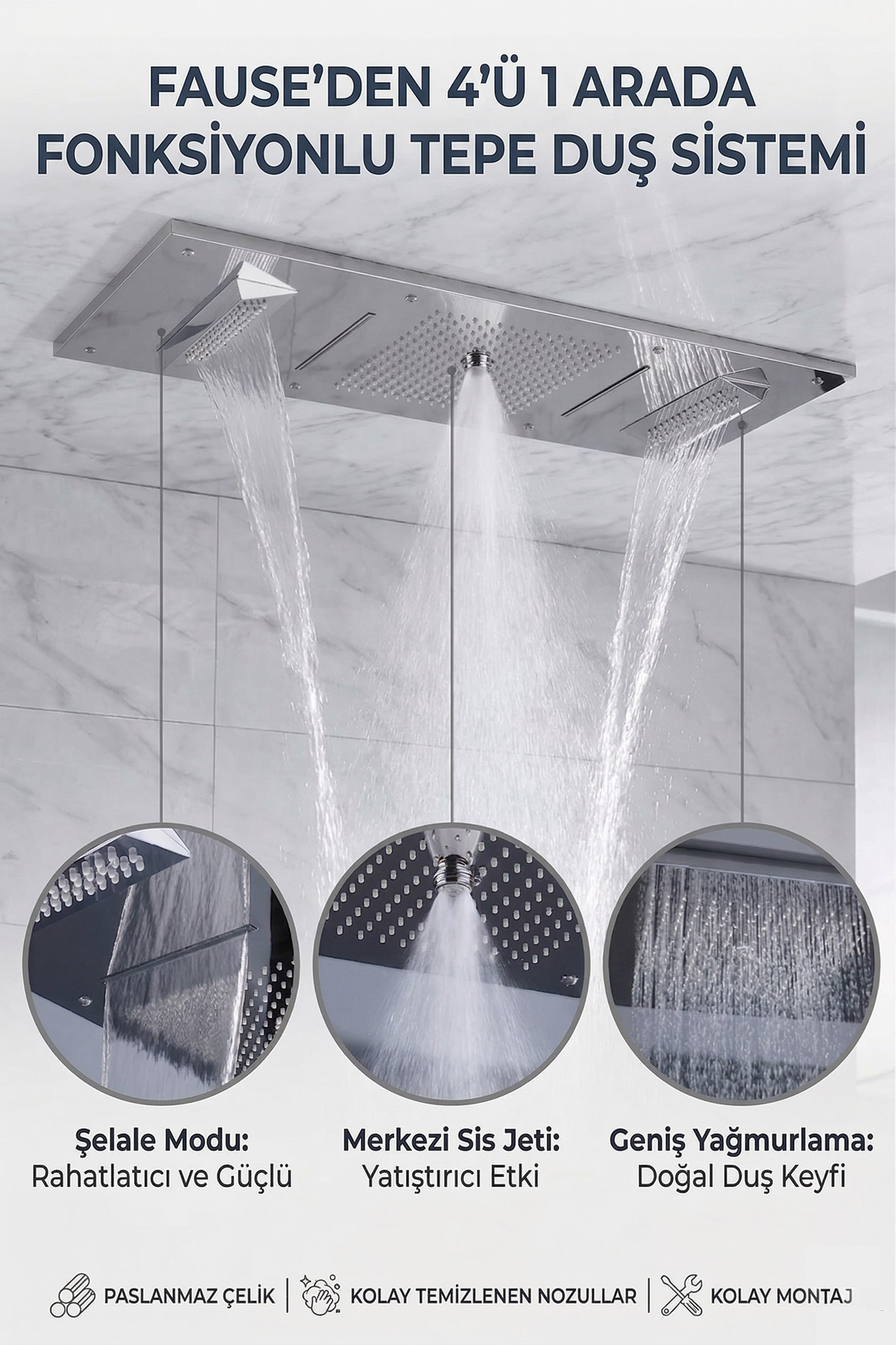 Fause Tavan Duş Paneli 4 Fonksiyonlu(Yağmurlama, Yandan yağmurlama,Sis ve şalale) 30×90 cm KTD113