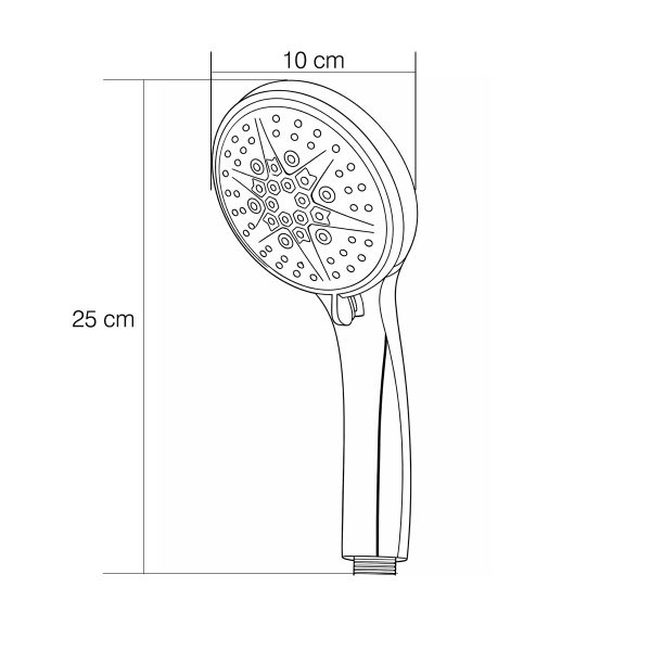 Mat siyah 9 fonksiyonlu, masaj etkili 25 cm x 10 cm ölçüsünde ABS üzeri komple krom kaplama, özel tasarım oval el duş başlığı Spiral hortum dahil değildir.