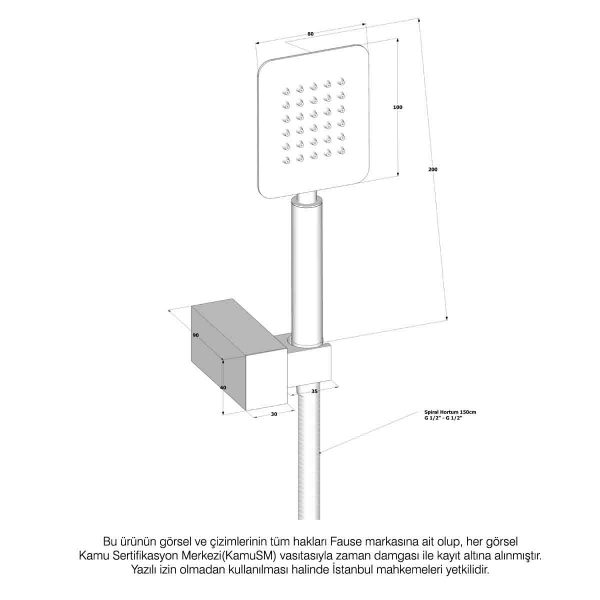 Kireç kırıcılı, 304 çelik, tek fonksiyon el duş başlığı