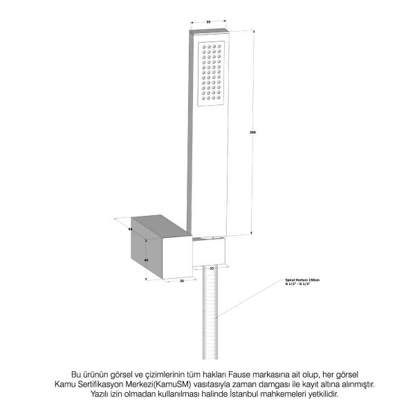 Paslanmaz çelik krom kaplı, EPDM iç hortumlu, çift kenetli, ince diş, sık dokuma, 1/2 konik ve 1/2 tırtırlı pirinç somunlu, 150 cm duş hortumu