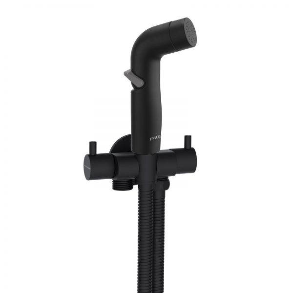 Spiralli Taharet El Duşu Askılı Çiftli Ara Musluk Siyah SET101-2B
