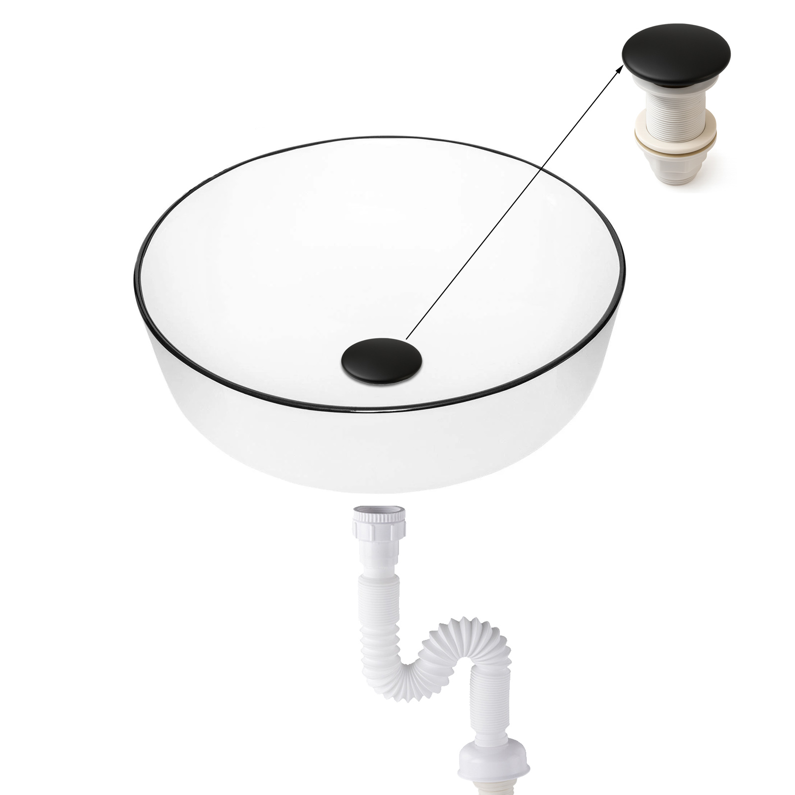 Pop-up Basmalı Mat Siyah Seramik Başlıklı Lavabo Sifonu KSF103-B